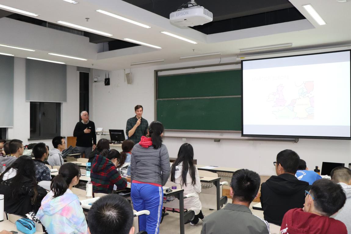 Willem Eerland教授现担任国际通用工程学院助理教授,先后在荷兰代尔夫特理工大学获取学士学位,在德国亚琛工业大学完成硕士课程,在英国南安普顿大学获得计算机工程博士学位。他结合自身求学经历与同学们分享了海外学习的益处和收获,并就中国和欧洲大学在教学、学习、生活方面的异同进行了生动有趣的讲解,并对如何关注、充分利用欧洲大学的学术资源与课程更好地发展自己国际化学习经历给大家提供宝贵的意见与建议。